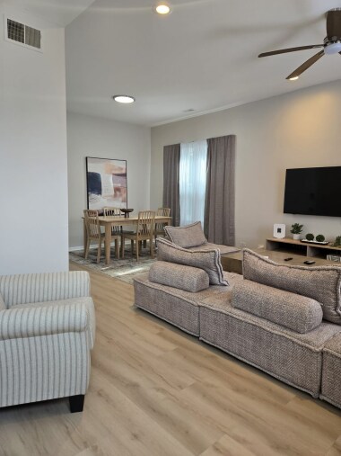 * Bedroom 1: King bed + 42" Smart TV